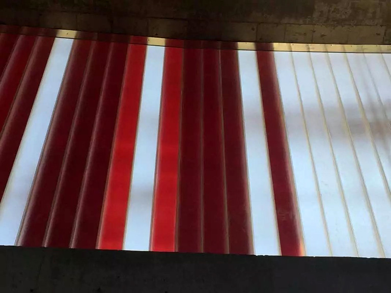 超白玻U型玻璃与中国红釉面U型玻璃